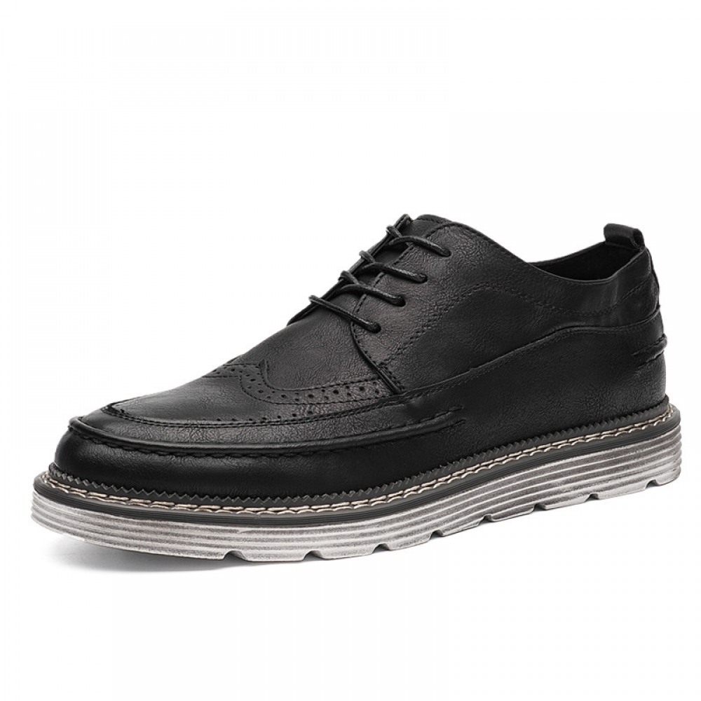 Black Men's Small Leather Shoes Mens Trend Casual Leather Breathable Shoes
