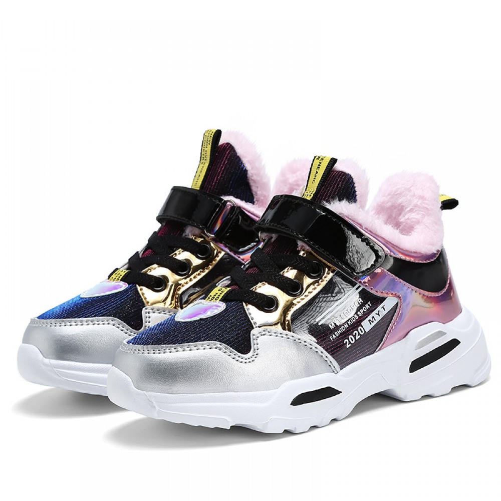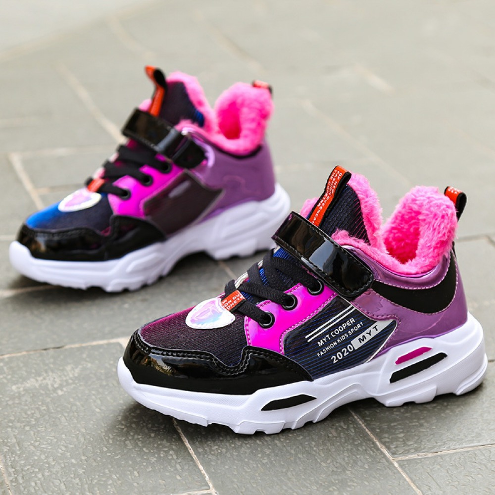 Girls' Sports Shoes Children's New Girls' Winter Shoes and Velvet Warm Kids Shoes