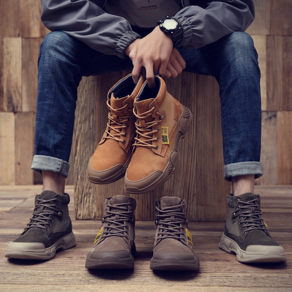 Men's Shoes Autumn and Winter New High-Top Boots Trend Tooling Military Boots British Martin Boots Men's Trendy Mid-Top